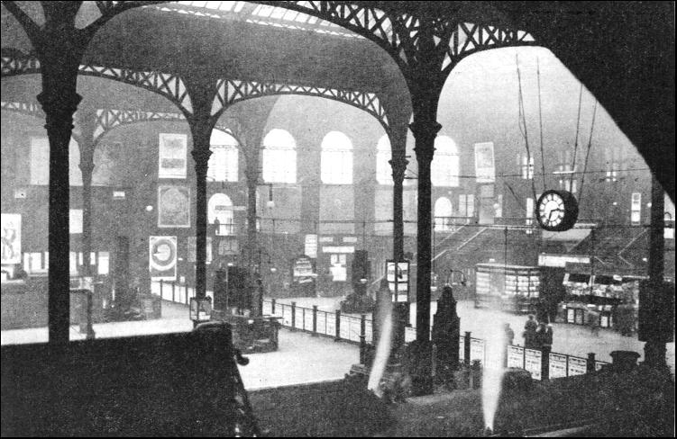A feature of the station decoration was the iron scroll work at the western end, which was not removed until the early part of 1935. At the eastern end was built the Great Western Hotel. Under the hotel are entrances to the London Underground Railways. The design of railway stations has led to the adoption of an infinite variety of types, depending on local circumstances and requirements. Considerations of space have led to some rather unusual arrangements in railway-station planning. At Sydenham Station on the Southern Railway suburban line the down platform does not face the up platform, which is built farther south, on the opposite side of an over-bridge carrying a roadway The south end of the down platform is not connected with the north end of the up platform except by the road bridge. The station has been built in this curious shape because of the lack of building land opposite either platform. The situation of a station is generally governed by the proximity of a town or village to the line, and the site chosen is naturally as close as possible to a main road, Where a road crosses the railway, a very popular position for the main station buildings is on the road bridge, with long ramps leading down to the platforms below. The design of any station depends mainly on the requirements of its position and the convenience of the buildings both for the use of the railway staff and of the travelling public. The design of the large stations, particularly where the frontage of the street is occupied by a large railway hotel, has usually followed the architectural tendency of the period. The Georgian and Victorian styles of building are exemplified in the older railway stations and hotels of Great Britain, but new construction has shown a decided tendency to strike a modern note. Many notable examples of modern architecture are exemplified in station buildings both in Britain and abroad. An example of recent construction in reinforced concrete is to be found on the Northern Railways of France at Lens. Interesting features of this station are its concrete clock tower and the twin pylons that carry the telegraph wires. The cross-ties of these pylons above and below the insulator bars produce an effect reminiscent of the bead-frames used by children in the earliest stages of their mathematical education.