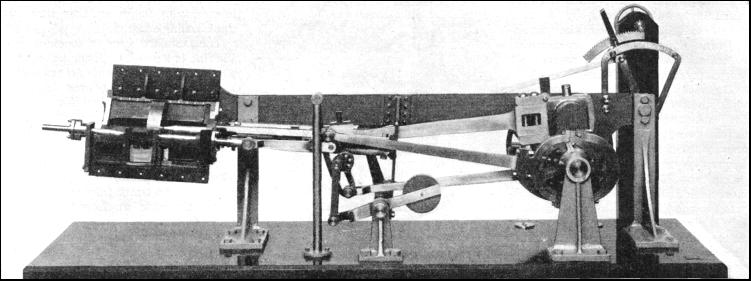 Valves at that time had no lap ; that is, they just spanned the steam ports and no more ; the eccentric was therefore placed at right angles to the main crank. If the eccentric were 90 deg. ahead of the crank, the engine ran forward ; if 90 deg. behind it, the engine went backward. A Dundee engineer named Carmichael devised an arrangement requiring only one fixed eccentric. He connected the valve spindle to one end of a centrally-pivoted rocking lever. This had projecting pins at either end, and the eccentric rod had a double "gab," resembling two V-forks placed back to back, at the end. By means of a lever and rod, the eccentric rod could be made to engage with either pin at will ; so that the eccentric either moved the valve rod direct, when the engine went ahead, or moved it through the rocking lever in the opposite direction, when the engine, of course, went backwards. This arrangement answered perfectly for a time, but soon another trouble arose—the need for expansive working. By this time locomotive engineers had found that it was wasteful and unnecessary to admit steam during the full piston stroke ; they thereupon lengthened the valves by adding a lap at either end, so that the port was closed before the piston had made its full travel. The opening time, however, still had to be the same—that is, with the crank on dead centre ; and therefore, the eccentric had to be moved on ahead of the 90 deg. setting, to an amount sufficient to allow the valve to open at the right time. This upset the Carmichael gear because, if the eccentric were advanced to give early opening when driving the valve direct, it would be correspondingly late when driving through the rocker.
