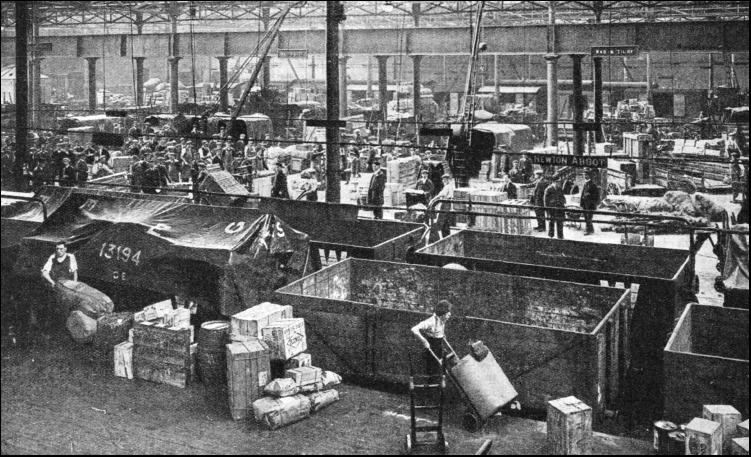 The British railway fleet varies considerably both in size and character. Thus, at the one end of the scale are the fast turbine vessels, and at the other a number of steamboats of under 250 tons. In between come such special craft as the Southern Railway's Auto-carrier, built for the conveyance of motor-cars, the same company's electrically-driven floating crane, and the cargo vessels plying between England and Cherbourg and Honfleur. This company also owns a motor launch that is stationed at St. Malo The diversity of this branch of the British mercantile marine is exemplified by the Southern, whose miscellaneous vessels include paddle boats, single, twin, and triple screw steamships, turbines of both the geared and the ordinary variety, coal barges, lighters and hulks, steam launches, tugs, tow boats and hopper vessels, and ash barges. The Southern Railway has also train-ferry interests, as has the London and North Eastern Railway. At one time it was the fashion to call the subsidiary railway businesses "side shows," but, save for such exceptions as the limestone quarry owned by the London, Midland and Scottish, each of these "side shows" is a considerable undertaking in itself. The hotels, for instance. Not many people, even those with a good knowledge of railways, realize that the four great British railway companies own the largest chain of hotels in the world The total number, including those managed by the companies for other proprietors, is seventy-nine They are situated all over the country, eight being in London alone. They include some of the best known institutions of their kind in the kingdom, such as the Gleneagles Hotel, in Scotland ; the Adelphi, at Liverpool ; the Midland, at Manchester ; the Lord Warden, at Dover, where so many thousands of travellers have broken their journey to and from the Continent ; and the Great Eastern, Great Northern, and Euston Hotels in London. Allied to the hotel business is that of restaurant cars and refreshment rooms. Excluding Pullman cars, which are not owned by the railway companies, there is a total of nearly seven hundred restaurant cars in service. This facility is equally available to the third- and the first-class passengers. Every train, including the fastest and most luxurious, is open to the third-class traveller. Moreover, where a supplementary charge is made, as on the "Brighton Belle," this is far more modest than the addition to the normal fare payable on American and Continental luxury trains. The same holds good of sleeping cars, as will be seen by comparing the charge of £1 for a "sleeper" between London and Aberdeen with that for a journey of corresponding length abroad. Another important business operated by the British railways is that of cartage. This has grown to its present dimensions because of certain operating conditions peculiar to Great Britain and Ireland. The majority of the merchandise consignments are small in bulk, weighing less than half a ton, largely because the speed of the goods services makes it unnecessary for a trader to hold large stocks of merchandise when the railway will so quickly bring a fresh supply to his warehouse or shop. As was declared over forty years ago by one of the most celebrated of all the writers on English railways, "celerity in goods traffic seems to have been a special feature of English railway management from the very first. . . Speaking broadly, it may be said that the whole English goods traffic is nowadays organized on this basis—that the railway receives the goods from the consigner the last thing at night, and hands them over to the consignee the first thing next morning. . . . The Bradford woollen manufacturer attends the London wool sales, buys Cape or Australian wool, and then goes home to bed. At 7.15 next morning his wool reaches Bradford, and after breakfast he can set his hands at work to unpack the bales. It might be thought that speed such as this was fast enough for anything ; but . . . the market traffic (fish and meat) goes much faster yet."