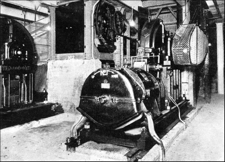 It may be as well to say that there are difficulties in the way of the complete replacement of lifts. Whatever the depth of a lift shaft, allowance need be made only for vertical movement, whereas the escalator travels in both a horizontal and a vertical direction. Considerations of space, and the presence of subterranean gas, water or electric mains, may make the escalator impossible at stations lying an unusual depth below the surface. Hampstead, where the shafts go down to the record level of 181 ft., is an example of this. The latest practice is to arrange the escalators in banks of three, an arrangement permitting the use of the middle one for reversible working during the rush hours. Another recent innovation is to break up the escalators at interchange stations into two flights; the lower is served by only one line, while the upper is used by passengers to and from both. Typical examples are at Piccadilly and Tottenham Court Road, and a similar arrangement has been adopted at the reconstructed Holborn Station, which serves both the Central London and the Piccadilly Tubes, and is the latest to be equipped with two flights. Where the flights are interrupted it is the general practice to provide a larger number of escalators at the higher level, where passengers to and from two lines have to be dealt with. The speed and the capacity of escalators vary considerably. The capacity is, of course, dependent on length, which varies with the depth of the platforms below ground and whether the escalators give continuous travel or are arranged in two flights. So far as speed is concerned, the tendency in recent installations has been to quicken the maximum rate of movement, while the speed can be accelerated or slowed down to meet fluctuations in traffic requirements. Slowing down is practised when, in the event of heavy traffic congestion, it is necessary to restrict the entrance of passengers to the platforms, or when the service is running irregularly owing to breakdown or other causes. The escalators can be stopped altogether, and then they are temporarily converted into fixed staircases. Where they are arranged in banks of three, the middle one is usually put out of working during the slack hours, both to save current and because a number of people prefer a fixed to a moving stairway.