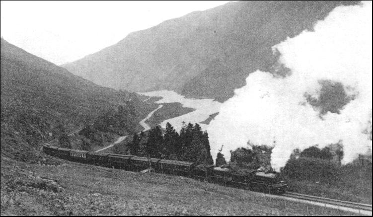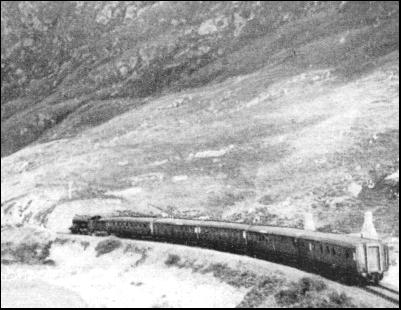 The other mountain line of the L.N.E.R. in Scotland is remote from the West Highland excepting, of course, the Fort Augustus branch from Spean Bridge, which has one coal train a week and nothing more. The other line in question is the Speyside branch of what was formerly the Great North of Scotland Railway, far away in the east of the country. The Highlands are entered by the main Aberdeen-Inverness line through the forest-clad Glen Fiddich between Dufftown and Craigellachie. From the junction at Craigellachie the Speyside line runs up the valley of the river from which it takes its name, finally joining the Highland line of the L.M.S. at Boat of Garten, within view of the 4,000 ft. summits of the Cairngorm group. The oldest mountain lines in Scotland are those which formerly belonged to the Highland Railway, now part of the L.M.S. Railway. The earliest section of the former Highland Railway dates back to 1855. The mountain line from Perth to Inverness was built a little later. After a steady climb from Stanley Junction, on the Perth-Aberdeen main line, the Highland line enters the hills by way of the noble valley of the Tay, passing the station of Dunkeld and Birnam. This region is rich in reminders of ancient feuds and wars. But all is calm and peaceful in the Vale of Atholl to-day. Between Blair Atholl and Struan are the Falls of Bruar, surrounded by woods planted by a former Duke of Atholl, following a poetical petition by Robert Burns. At Struan the line crosses the Garry on a high bridge, immediately beneath which, at a different angle, a very old road bridge also spans the foaming waters. By long gradients averaging 1 in 70, the line climbs up to the summit-level in the wild and bare Drumochter Pass, 1,484 ft. above the sea. This height is exceeded on a British railway by that of Leadhills Summit (1,498 ft.) on a branch line of the L.M.S. From Drumochter Summit, between the two mountains called the Sow of Atholl and the Boar of Badenoch, the line runs down the upper valley of the Spey, through Newtonmore and Kingussie, to the important Highland junction of Aviemore, situated between the Cairngorms and the Monadhliath Mountains. Hence the old main line strikes across Dava Moor from Boat of Garten and Grantown-on-Spey, attaining a summit level of 1,052 ft. quite near the sea-level section beyond Forres. On Dava Moor terrible snow-blocks have taken place in days gone by. Once a train was buried in a drift more than 50 ft. deep. On another occasion a cattle train was snowed up and every beast on board smothered. Events such as these were among the deciding factors in the construction of the alternative and much shorter main line to Inverness from Aviemore, which crosses Slochd Mhuic Summit, 1,315 ft. up, near Carr Bridge. On this section occur the great Tomatin and Culloden Moor viaducts. In the battle of Culloden Moor, the Jacobites were defeated by the Government on April 16, 1746. The battlefield is marked by a cairn. Coming down from Culloden Moor to Inverness, from the right side of the train the passenger enjoys an unforgettable view of the North Highlands, stretching away beyond the Moray Firth, and flanked on the east by the North Sea. Beyond Inverness the line does not enter the mountains again until it has passed Dingwall, whence branch lines run west to Strathpeffer and Kyle of Lochalsh. The "Skye Line," as it is called, climbs straight up into the Highland hills from Dingwall, passing below the great precipitous hill known as the Raven Rock. This line was opened to Strome Ferry in 1870, and extended to the Kyle of Lochalsh, opposite the Isle of Skye, in 1897. The climb from Dingwall to the Raven Rock involves four miles at 1 in 50, a formidable obstacle to a heavily-laden tourist train. Up past Garve and Loch Luichart, the train creeps into country nearly as wild as that of Rannoch Moor, though not so utterly desolate. The Skye Line is, perhaps, more at the mercy of the elements than any other British line of importance. During one bad winter, it was so completely blocked by snow that its clearance was given up as a hopeless task for some time. Achnasheen Station, in the midst of this wild but beautiful desert—for a desert it is, agriculturally—had a refreshment room in the days of the Highland Railway. The old Highland trains had no restaurant cars, and very few corridor coaches. From Achnasheen a main mail-car road runs to Gairloch and Loch Maree up in Wester Ross. Leaving Achnasheen, the train runs in a south-westerly direction down through Glencarron, where there is a private railway station, to Achnashellach. Achnashellach has one of the most remarkable situations of any station in Great Britain, for it lies so close under the mountains that they seem about to topple on to it. From this point the line descends to the shores of Loch Carron, a fjord running in from the sea over against the Isle of Skye, and reaches first Strathcarron, and then Strome Ferry, the old terminus of the line. Beyond this, along the newer extension to the Kyle of Lochalsh, the scenery is superb. The line itself, too, was one of the most difficult to build in Great Britain. It twists and turns along the rugged coast, through deep rock cuttings and round promontories which, at a distance, would seem impassable even to a pack-horse. In the north-west, the whole rugged east coast of the Isle of Skye stretches away into blue distance, from the Red Hills and the tooth-like Coolins to the distant crags of Ben Storr. When, finally, we reach the terminus on the jetty at the Kyle of Lochalsh, we are close to Skye, and in the shadow of Ben na Caillach, one of her lesser mountains, a beautiful hill that resembles a natural pyramid.