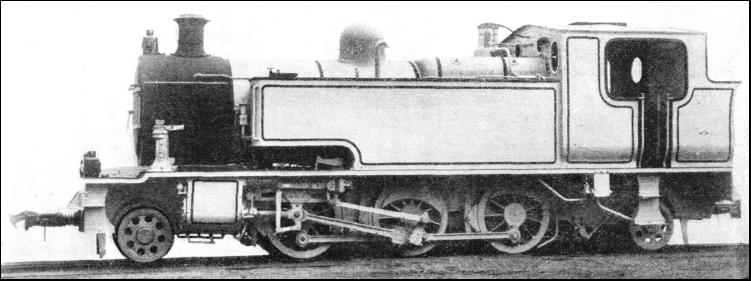 The heat produced in the Diesel end of the cylinder, which is water-jacketed, is used to generate steam for use in the opposite end, and the Diesel exhaust is also employed to heat the locomotive's steam boiler. This boiler is heated by a special oil burner on starting, but steam is normally maintained by the waste heat of the Diesel system. The engineers have thus obtained a double-acting engine of very high efficiency. The eight cylinders of the Kitson-Still locomotive are arranged, tandem fashion, in two sets of four, but unlike the rest of the relatively small number of tandem locomotives the cylinders were opposed so as to work on the same crankshaft. The steam ends of the cylinders faced the crankshaft, the Diesel portions being farthest from the cranks. Indirect drive was employed, the connecting rods working on to a shaft placed between the boiler (which was high-pitched) and the coupled wheels. The power was transmitted to the latter by gearing of the ratio of 1.878 to 1. The wheel arrangement was of the 2-6-2 type. Owing to the space occupied by the cylinders and their position above the wheels, the water tank, which had a capacity of 1,000 gallons, was accommodated at the rear, beneath a fuel oil tank, with a storage space of 400 gallons. The working pressure was 180 lb. to the square inch. The coupled wheels were of 5 ft. diameter and the leading and trailing pair of 3 ft, and a combined exhaust was provided for both sets of cylinders. The smoke-box was extended, and the leading truck projected to an unusual extent beyond the front end of the engine. The Kitson-Still engine has not yet been developed to the state of utilization in regular railway work. Its design is most ingenious, however, and is particularly interesting in view of the remarkable developments which have taken place in the use of the Diesel engine for railway work. Tank engines, as a class, have given valuable service to the railways of the world and, with the weight of the water tanks and coal bunker available for adhesion, have proved capable of handling all kinds of traffic from heavy mineral trains to the fastest main-line expresses.