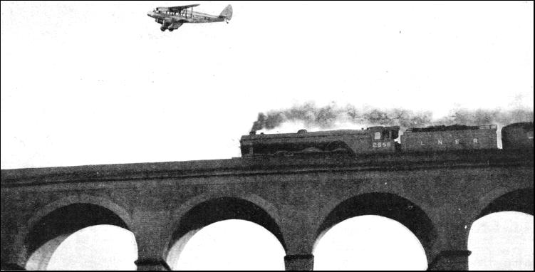 The main line of the London and North Eastern, however, meets its first viaduct long before it reaches Scotland. This is the great Digswell Viaduct near Welwyn, on the old Great Northern main line. It is built of masonry, and crosses the valley in a straight line on forty arches. On the same section is another imposing viaduct at Ilkeston ; but some of the most remarkable of the L.N.E. viaducts,after the Tay Bridge, are to be found on what used to be the North Eastern Railway. At Berwick there is the Royal Border Bridge, a grand viaduct of stone, crossing the Tweed and its valley on twenty-eight brick-lined arches, at a height of 126 ft. above the river. The length of the viaduct, which was opened by Queen Victoria in 1850, is nearly half a mile. Curiously enough, however, many of the old North Eastern's notable viaducts are not on main lines at all, but on the long cross-country lines linking the North-East Coast with Cumberland and Westmorland. There is the lofty Hownes Gill Viaduct, 175 ft. high and having twelve 50-ft. arches ; but perhaps the most interesting are those on the Darlington-Tebay line, for here we encounter the finest and best British examples of the trestle. There are no less than twelve fine viaducts on this relatively short line, and of these, the Belah Viaduct is undoubtedly the most noteworthy. It is an iron trestle viaduct, 1,040 ft. long and 196 ft. above the lowest part of the valley which it spans. The foundation stone was laid on November 25, 1857, and the whole structure was completed within the astonishing time of four months. Before we leave the L.N.E.R. we must mention, briefly, the viaducts on the West Highland Railway, which was formerly worked by the North British. The finest of these is the splendid concrete viaduct at Glenfinnan, in Inverness-shire. It has twenty arches, and is built on a noble, sweeping curve in one of the most beautiful localities in the world. Nor does it spoil the natural effect ; the glen is too big for that, and nothing is dwarfed or made incongruous. Of the Glenfinnan Viaduct, J. J. Bell wrote that it was "a thing so delicate that the fairies might have built it." Only when one sees one of the big "Loch" class engines crossing with a train does one realize how great the viaduct really is. The whole effect is that of a very tiny model railway laid in a stupendous rock-garden. There are many viaducts on the West Highland ; another attractive one is that on the famous Horse-Shoe Curve between Tyndrum and Bridge of Orchy, where the train seems literally to be chasing its own tail. The viaduct itself, however, built as it is of steel on masonry piers, is not nearly so attractive as that of Glenfinnan. Leaving the L.N.E.R. in the Scottish Highlands, we can join the L.M.S. in that locality, for the old Highland Railway, which now forms the northernmost section of the L.M.S., has many fine bridges and viaducts. Quite the finest is that crossing the River Nairn on the direct line from Aviemore to Inverness, which is built of Old Red Sandstone. It has twenty-eight 50-ft. arches, and one grand arch of 100 ft., going over in a perfect rainbow curve.