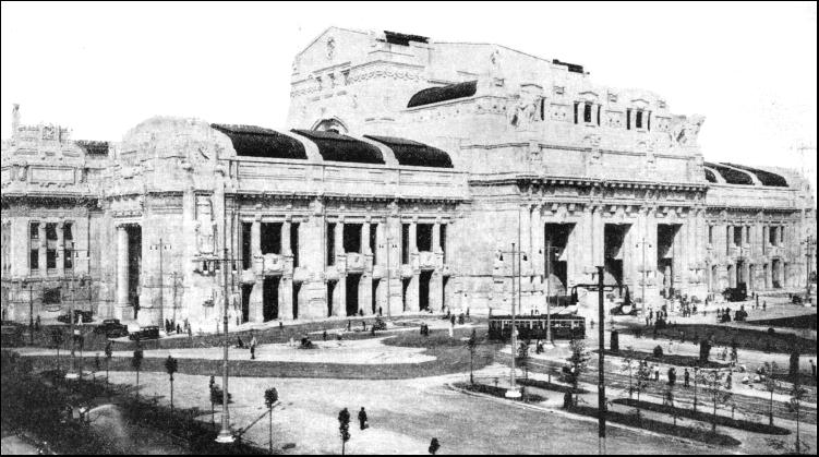 MILAN is the commercial and industrial capital of Italy. As the centre of a highly industrialized territory, and at the same time of one of the most fertile districts in Europe, it was predestined, by its geographical position, to become a great railway junction where through trains could converge from all corners of Europe. Milan had long required adequate facilities for dealing with millions of passengers and with the vast goods traffic. Before the war of 1914-1918 plans for the reorganization of the station and its approaches had been passed by the State Railways Administration. The vast programme comprised the construction of a new central station for passenger and express goods service, the layout of a new marshalling and goods yard, the construction of a new locomotive depot, various new junction lines, and subsidiary goods stations. During the war, and the years immediately afterwards, nothing was done, and it was only in 1925 that work was begun. As a result, the new Central Station was opened on July 1, 1931. Travellers from all over the world have judged the Milan terminus to be the most magnificent railway station in existence. The splendour and wealth of its decoration, together with its imposing size, make it an object well worth a place among the railway wonders of the world. Milan Station is the largest in Europe. It covers an area of over 103 acres, more than four times as much as that of the largest railway station in Great Britain ; the fine bay roof is second only to that of Leipzig, which is the biggest in Europe. Milan Station comprises the station buildings, the track layout, 25 ft. above the level of the street, and the express goods depot, constructed at street level below the platforms.