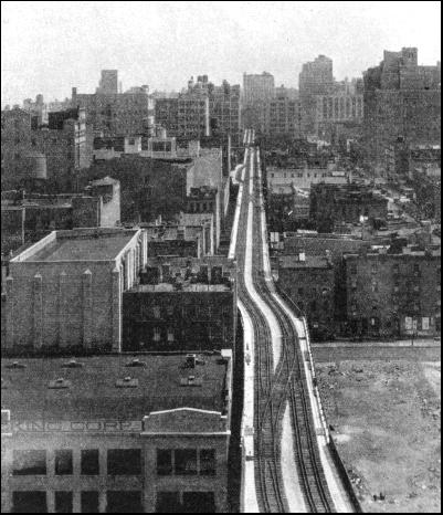 The connexion between overhead and underground railways exists also in Berlin, where part of the transport system consists of a once independent undertaking known as the Hoch und Untergrundbahn, or "High and Underground Railway." The use of both methods of construction was here planned from the outset, and the line, which was opened in 1892, has a feature that calls for inclusion in any record of railway curiosities. At one point it cuts through part of the lower stories of a dwelling-house, which was otherwise left undisturbed. Close by is the "Dreieck," or triangular junction, which is Berlin's equivalent to the Boston reversing loops, and has greatly added to the flexibility of the system. The railway now consists of five main sections and a number of branches designed as feeder lines to the main network, has a total route length of about fifty miles, and was from its opening electrically operated on the multiple-unit system. It is partly carried on steel bridges, some of the skew pattern. Although developments have taken the short-distance passenger railway underground. New York has for many years been identified with the elevated railway. The beginnings of the "L," as it is called, were in a small way, in 1870, when three miles were opened to traffic. Eighteen years later the system crossed the Harlem River. To-day its tracks extend to well over a hundred miles. Before electrification the steam locomotives in use—of a design somewhat unfamiliar to British eyes—were among the principal contributors to the noise of New York. Part of the elevated system is three-track, the middle road having been designed for reversible working during the various rush hours.