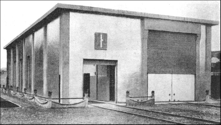 This Italian structure for research is considered to be one of the most remarkable of its kind at present in existence The new building has a length of 84 ft., a width of 36 ft., and an internal height of 18 ft. 9 in. It contains two isothermic cells, of which the larger. 19-3/4 ft. wide, occupies the whole length of the building. The smaller cell is 16-1/2 ft. long and 13 ft. wide. The cubic capacity of the cells is 28,050 and 3,730 cu. ft. respectively. The walls are 8 in. thick and are constructed of a special material known as "Cellulite." This is a light cement of cellular structure, either supplied in blocks or cast on the spot. The thermal conductivity of this material ranges between the low figures of 0.045 and 0.07 ; thus the material is eminently suitable for insulation. The walls on either side are faced with reinforced concrete 2 in. thick. The outer sides of the walls and the roof are faced with heat-reflecting polished aluminium. Particular attention has been given to the construction of the two-leafed doors. These are built in the same way as the walls and rotate on pivots in roller bearings. Each leaf weighs 1 ton 7 cwt. Double rubber strips set into the edges ensure the hermetical closing of the doors. In the centre of each of the cells a railway track has been laid ; this is connected with the marshalling yard in Rome. The purpose of the isothermic cells is to investigate the insulating properties of refrigerated and isothermic trucks and containers, and at the same time the conditions of the loaded goods in different atmospheric conditions. It is, therefore, necessary to reproduce these atmospheric conditions artificially by heating or cooling the cells to the desired temperature. Temperatures vary in Italy to a degree unknown in England. While, for instance, the temperature on a day in December may be 62° F. in Sicily, it may be only 28° in Milan, or even 15° in Bolzano. Temperatures of 96° F. in the summer are normal in Sicily, and are sometimes even encountered in the Lombardy plains. It follows that a truck travelling from the south to the north of Italy is exposed to sudden variations of temperatures or to an intensive heat during the whole voyage. We can well imagine the state in which fruit or vegetables would arrive at their destinations if the refrigerated or insulated trucks (without ice boxes) were not impervious to external heat.
