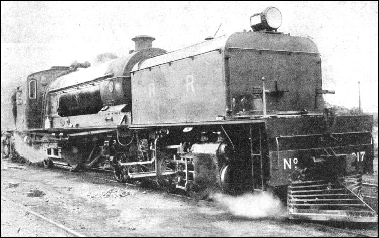 Cecil Rhodes, who was determined to keep the cost of construction low, had set a limit of about £5,000 a mile for the 3 ft. 6 in. gauge track. The engineering work was, therefore, kept as simple as possible. While the track was being laid the colonization of Rhodesia was proceeding, but not uneventfully. Lobengula, king of the Matabele nation, broke his treaty of "Peace and Amity." The Matabeles had continued their habit of raiding and looting the Mashonas, and had stopped and plundered white men. One impi raided Victoria and speared natives in the streets of the town. After some fighting, Bulawayo, Lobengula's capital, was occupied, after the king had set fire to it and fled. He was pursued and, in December, 1893, a small reconnoitring party of his pursuers, under Major Alan Wilson, was cut off from the main body by the flooding river, and overwhelmed and killed by Lobengula's bodyguard. Lobengula retired towards the Zambesi and died shortly afterwards. The famous raid into the Transvaal made by Dr. Jameson with a force largely composed of the company's police at the end of 1895 deprived the country of part of its police protection. The restive Matabeles rose in March, 1896, and when the white settlers in Mashonaland went to the aid of those in Matabeleland, the Mashonas rebelled also. Rhodes decided that the railway must be built as rapidly as possible, and gave orders that the rails must reach Bulawayo before the end of 1897, as, in addition to the war, an epidemic of rinderpest in Rhodesia had broken out, killing the cattle and stopping all forms of animal-drawn transport. In those pre-motor transport days the railway builders brought up traction engines to use between the railhead and the construction camps when they had no animals. At the time when Rhodes gave the command to press forward the railhead was 492 miles from Bulawayo. The contractors enrolled large forces of natives and achieved the feat of laying 492 miles of track in 500 working days, reaching Bulawayo in October, 1897, soon after the rebellion had been put down. Because of the need for urgency and the restrictions on cost the terms governing construction were not very exacting. They were that the line should "be capable of effectually conveying traffic at a speed of twelve miles an hour on completion," and that gradients and curves were not to be sharper and heavier than usual for a line of this gauge. Ballasting was to be used only on those parts of the line where it was necessary to ensure safety during the rainy season. Wherever the surface of the ground was even it was followed, the steel sleepers being packed with the minimum of ballast. Shallow streams and rivers were not bridged, the line being taken across over a ford. Sometimes the water rose above the rails. The train would proceed carefully down the bank and send up a shower of spray when it ran into the water. The line was later improved and the fords were replaced by steel bridges.