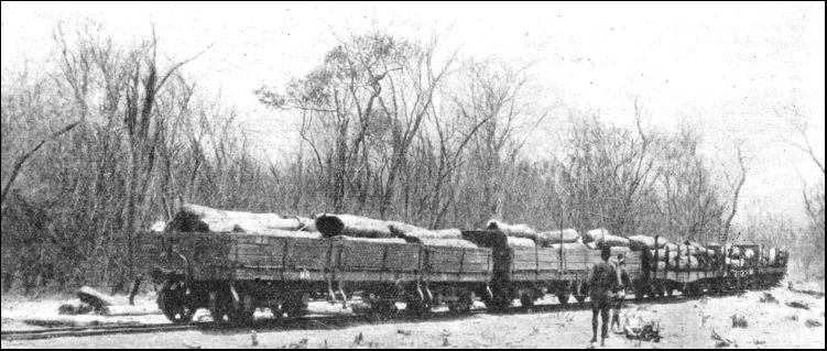 When Broken Hill was reached there was a halt for a little while until the mineral wealth of the Katanga region in the Belgian Congo was developed, and the need for obtaining more traffic to make the railway pay impelled the owners to carry the line to the Congo border, which was reached in November, 1909. In addition to the main line, several branch lines were built. In the first instance nearly all of these were made to tap mineral wealth. For example, the branch from Salisbury to Sinoia was intended originally to serve the Ayrshire and Eldorado Mines. The branch from Salisbury to the highly cultivated country opened up by the building of the Mazoe Dam and its irrigation scheme was originally built to serve the Shamva Mines. From Gwelo to Fort Victoria, 123 miles, the branch was built in the first place to serve the Falcon Mines at Umvuma, the line being extended to Fort Victoria towards the Zimbabwe Ruins. Readers of Sir Rider Haggard's "Allan Quatermain," "Dawn," "King Solomon's Mines," and "She" need no introduction to these ruins, the origin of which is still unknown. The branch from Gwelo to Selukwe, twenty-two miles in length, constructed to open up gold mines, later became important because of chrome ore and asbestos deposits. The branch from Heany Junction to West Nicholson was built to serve gold mines in the Gwanda district. From Vryburg to Bulawayo the distance by rail is 588 miles; from Bulawayo to the Congo border is 788 miles ; from Bulawayo to Salisbury is 299 miles, and from Salisbury to Beira 374 miles. The most difficult country traversed is not in Rhodesia, but on the 204 miles of line from Umtali to Beira, through Portuguese territory. Soon after leaving Umtali the train descends rapidly over the escarpment to the Portuguese township of Macequece, the line falling about 1,000 ft. in twenty miles. As the train twists and turns along the sides of the hills the track can be seen miles away in the valley below. The journey between this town and Vila Pery is interesting, the train travelling for some forty miles through broken country with rocky, fantastically-shaped kopjes. Considerable streams are crossed, and there is also a rich agricultural plateau which extends for about thirty miles to Maforga. The line then descends over the Amatongas escarpment and winds through the beautiful Amatongas Forest, the vegetation at this lower level becoming tropical, with giant trees and creepers Passing out of the foothills and emerging on to the plains, almost at sea-level, about 140 miles from Umtali, the railway goes on for some twenty-five miles to the Pungue River at Fontesvilla. As stated earlier in this chapter, Fontesvilla was originally the terminus of the narrow-gauge railway. Most of the rails in Rhodesia are in 60-lb. sections, and the sleepers are mostly of steel, although native timber has been used to some extent. The principal workshops are at Bulawayo, which is the most important railway centre. The workshops are able to deal with repairs of the heaviest description, the equipment including 60-ton travelling cranes, electric transverses, and modern plant. The railway water supply scheme includes a dam on the Khami River, some eighteen miles away, which provides storage for 170 million gallons. There are subsidiary workshops at Umtali.