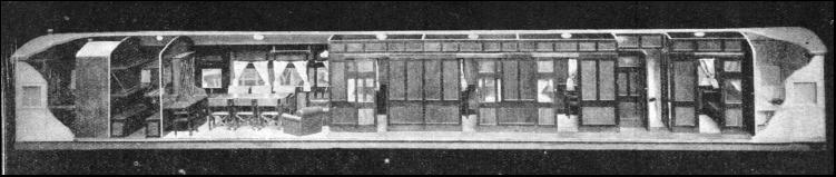 Some miniature railways have, in fact, been constructed in this manner to demonstrate the possibilities of real craftsmanship when applied to such work. A line of this description has been built by Sergeant W. H. Crothall, R.A.F., over a period of twenty years, during which time the railway has earned large sums for charity by exhibition at public functions. There is also a commercial use lor railway models. Many of the large companies use them for publicity purposes, or to assist intending passengers in the choice of their seating accommodation. Such models are usually built by firms who specialize in this work. A fine example of craftsmanship is the model of a luxurious tourist coach on the Great Indian Peninsula Railway, built by Messrs. Bassctt-Lowke, Ltd., for the Indian State Railways. The model measures 4 ft. 3 in. long by 7 in. wide and 6-1/2 in. high, and is built to a scale of 3/4 in. to the foot. The use of a private coach, or tourist car, as it is called in India, enables the traveller to be independent of hotels. He brings his own servants and makes his own catering arrangements throughout the journey, and the coach can be detached and left indefinitely at any place he desires to visit. This type of vehicle is becoming popular in India. The woodwork of the coach is of polished teak and oak. and the car contains a complete suite of rooms for passengers and servants. The compartments in the carriage comprise the kitchen, servants' quarters, dining and day saloon, three double sleeping compartments, one special suite complete with private bathroom and, at the end of the corridor, the general bathroom.