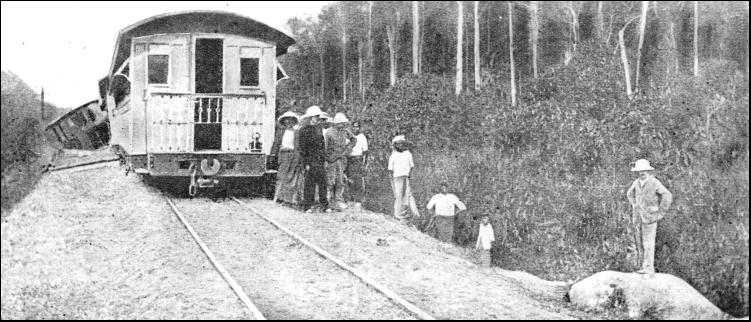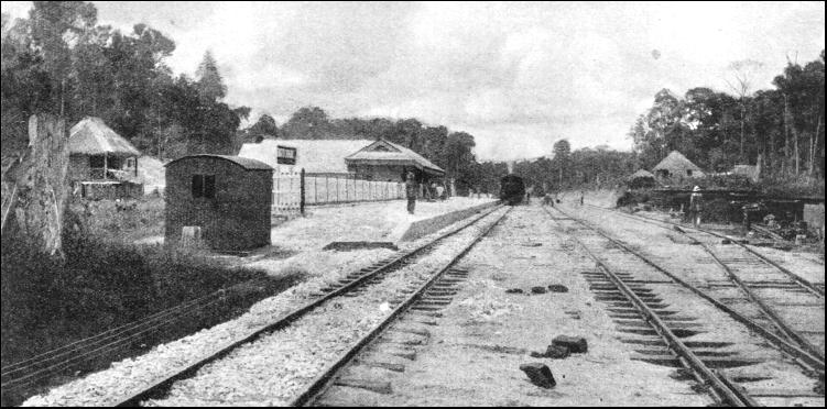 This scheme was influenced by the fact that in Siam, a country friendly to the British development of Malaya, a scheme was in progress which would eventually take the railways to the borders of British Malaya. But although the scheme was easy on paper there were many difficulties to be overcome. The Peninsula, covered with dense forest and jungle, was intersected by ranges of hills and mountains, between which the waterways make their winding ways east and west. As already stated, these rivers were the main arteries of native travel, and roads in the ordinary sense did not exist. Such tracks as were found proved to be ill-defined bridle-paths. Because of the heavy rainfall the vegetation is luxuriant, and the conditions were bad for Europeans. The decaying seasonal vegetation and the swamps, steaming in the heat. formed a gigantic hot-house and forcing ground for the germs of fever. So far as supplies of material and food were concerned the country was almost barren. When the railway pioneers began, the Malays had not become accustomed to peaceful conditions, and although they produced enough food for themselves they had none to spare, also their produce was not suitable to the support of white men in the tropics. The food problem was a vital one, and monotony of diet was one of the problems that the pioneers had to solve. Driving roads through the jungle became a task in itself. The sodden, swampy ground was too treacherous to support the weight of a loaded vehicle until a corduroy road had been made, so that before anything could be done a rough highway had first to be made, and this took time. and was attended with many troublesome breakdowns. Except for timber, every ounce of material had to be imported from Great Britain, involving a sea journey of 8,000 miles. The first line, less than eight miles in length, was that already mentioned, from Fort Weld, on the west coast, to Taiping, which was opened on June 1, 1885, and assisted and stimulated the tin-mining industry. About the same time another line, farther south, from Klang, six miles up the river, was begun to Kuala Lumpur, also to develop the tin-mines. The line was opened in 1886, the future capital of Kuala Lumpur being in those days a typical mining camp. Railway construction went on steadily according to plan. The southern section crept northward from Kuala Lumpur to Kuala Kubu. About half-way between Klang and the original line from Port Weld, another track was laid inland from Teluk Anson Wharf, while north of Port Weld a beginning had been made with two lines, the most northerly of which was the one from Port Prai, opposite Penang. By the end of 1901 fair progress had been made, a total of 244 miles of track having been built. A general manager and a chief engineer were appointed, but both died in harness within a few weeks of each other early in 1903, and a third Briton was appointed to the dual post of general manager and chief engineer. In 1903 the initial sections of the line were linked up, giving a network of 340 miles, and affording through connexion from Penang in the north to Seremban in Negri Sembilan. When this first section of the trunk railway was completed, efforts were concentrated upon linking it with the base of Singapore, and an agreement was concluded with the Johore State Government. The construction of the Johore State Railway was taken in hand, beginning northward from Johore Bharu, which is on the mainland opposite the island of Singapore. Moving northwards from this point, the surveyors experienced many adventures. The intention was to make the line as straight as possible along the route of 120 miles to the boundary of Negri Sembilan, and the surveyors, who set out in March, 1904, had to tramp for a hundred miles through virgin jungle. Once they were beyond Johore Bharu there were no means of communication, and progress was reduced to a crawl. All the supplies for the survey party had to be brought up from the base by carriers, as the route lay through the jungle for nearly the whole way.
