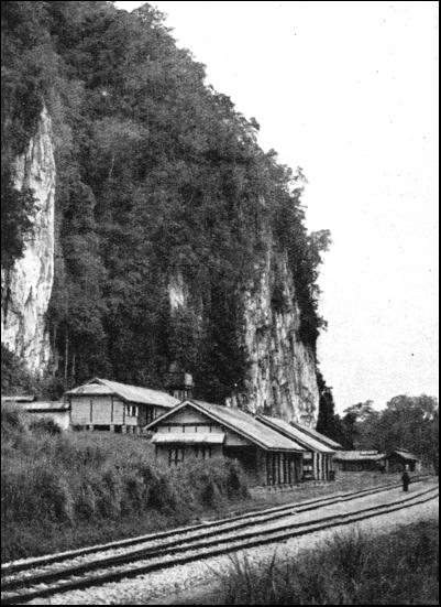 The railway climbs to the top of the Bukit Gantang Pass through several tunnels, and where it emerges from one tunnel, and crosses a bridge spanning a gully, there is a good view of Gunong Pondok and the valley of the Perak River. The line runs along the foot of Gunong Pondok, a tree-clad limestone rock 2,000 ft. high. It is the haunt of the serau, a species of goat-antelope, which is black and shaggy, with horns, hoofs, and a wicked eye which has caused it to be likened to old pictures of the devil. There are many limestone caves on the hill, inhabited by swarms of bats. After the hill has been passed, the railway passes rubber plantations and reaches Kuala Kangsar, on the Perak River. The commercial capital of Perak is Ipoh, 112-1/2 miles, which is a big centre for the tin-mining industry. The finest limestone scenery in the country is in this district, and the rock temples are famous. The dry air of the neighbourhood makes the town more invigorating than any other in the Peninsula. The line runs south from Ipoh, through Tapah Road, 145 miles, from where a branch line runs to the Perak River port of Teluk Anson. After Tapah Road the main line proceeds through jungle country to Tanjong Malim, 188-1/2 miles, where the train leaves the forest, and crosses the Bernam River into the more open country of the State of Selangor. This part of the railway journey to Kuala Lumpur, 242 miles, affords a variety of scenery—bamboo jungle which has sprung up where the virgin forest has been cut down, abandoned mines, open-cast mines, mines where jets of water at high pressure are used to mine the red hillsides, rubber estates, and little brick-built towns, each with a railway station. Kuala Lumpur, where the express stops for several hours, is a garden city, and the administrative capital of British Malaya. In 1872, when it was a Chinese town with two streets, the local ruler paid cash down in the market place for the heads of his enemies. The central workshops of the railway near Kuala Lumpur are equipped with modern machinery. Here the rolling-stock is made, and the locomotives, which are generally built in Great Britain, are erected. The line, which was built to serve the workshops, continues to a stone quarry. Beyond are the Batu Caves, which attract tourists. Kuala Lumpur is linked with Port Swettenham by a line which is twenty-seven miles in length. The port, even younger than the capital city, dates from 1901, and was made with the aid of the railway. The line formerly ended at the town of Klang, and the site of the proposed port was a tidal flat covered with mangroves growing in mud and salt water. The line was therefore extended to the mouth of the Klang River. Thousands of truck loads of earth were carried over the line and dumped along the sea-front, where a passenger jetty and three wharves to carry railway trucks were built. The jetty is on screw piles, but the wharves rest on cylinders driven into the mud, the deepest going down to 132 ft. During construction and afterwards, the port was a very unhealthy spot, but soon governments in all parts of the tropics began to apply the knowledge scientists had gained of overcoming malaria. The Selangor Government put a bund round the site to keep out the sea-water, and provided gates in this through which rain-water was drained. When the site was drained and dried, the malarial mosquitoes had no breeding pools. The methods were followed with an interest that was world-wide, and the work is a classical instance of the healthy results obtained when medical scientists and engineers combine in building a town on what was once a deadly swamp. Returning to Kuala Lumpur and resuming the journey, the traveller proceeds through the pretty village of Kajang and on across the border into the State of Negri Sembilan. The name means Nine States, and is reminiscent of the old days before British Protection fused nine little Malay princedoms into one State. Seremban, headquarters of the Government, is 288 miles on the journey from Penang, and is a couple of hours' journey from Kuala Lumpur. It is the junction for a branch line, twenty-five miles long, to the health resort of Port Dickson, which has one of the few sand beaches on the west coast of the Peninsula.