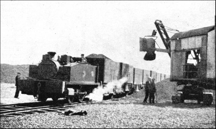 But the Londoner, with little opportunity for travel to Wales or Cornwall, may see a lesser, but very complete and interesting quarry railway system within about forty-five minutes of the metropolis. This operates in the great chalk pits and limeworks of the Dorking Greystone Company, adjacent to Betchworth Station, on the Southern Railway line between Dorking and Reigate Anyone who knows this part of Surrey will have noticed two gashes in the green face of the North Downs, only a mile or two eastwards from Box Hill The quarries and their railway are additionally easy to observe at close quarters, because an ancient right of way runs right across the workings, passing over the railway on a brick bridge midway between the lime kilns and the quarry itself. A standard-gauge railway connects the kilns with the Southern Railway's siding at Betchworth, while a narrow-gauge railway runs up from the kilns to the working face. There are extensive sidings in the immense white pit of the quarry, while terrace working goes on at a considerable elevation above them. For the transfer of wagons to and from the high level an interesting process takes place. There is a steeply inclined plane connecting the two levels, while more or less parallel to it there is a gentler incline. A line of rollers runs between the summits of the two planes, over which a wire rope is passed. When wagons are to be hauled up, that section of the wire rope which comes down the steep incline is coupled up to them. A locomotive, which normally remains on the lower level, then puffs up the easier incline, and is coupled to the other end of the wire rope. The locomotive now begins to haul and, with the gradient in her favour, moves steadily forward, causing the wagons to run, in the reverse direction, rapidly up the steep plane. To bring down loaded wagons, the process is reversed. The locomotive hauls in the first instance, and acts as a powerful brake on the descending loaded wagons in the second. The engines at Betchworth, though of rather old design, are admirably suited to their particular kind of work. One of them is something of a curiosity ; she has a vertical boiler, which has earned her the name of the "Coffeepot." This name is now in official use. The cylinders are also vertical, and are connected to the driving axle by gear wheels The "Coffeepot" was built in 1872, and at the present time is the spare engine on the standard gauge line. The other engines are ordinary 0-4-0 side tanks As might be expected in Great Britain, the colliery companies and ironworks to-day own the lion's share of the industrial railways: and anyone travelling through the coalfields of England, Scotland, and Wales will see their connecting lines coming in to join the main trunk railways at surprisingly frequent intervals. Their wagons may be seen in goods yards all over the country, however remote from their places of origin. The ordinary colliery locomotive is of a straightforward tank engine design, able to negotiate sharp curves, and exceptionally powerful for its size. But sometimes, as we shall see below, an unusual type of locomotive makes its first appearance on an industrial railway. The "Garratt" type of locomotive is exemplified in Great Britain by one engine on the L.N.E.R. and by thirty-three on the L.M.S., all built in recent years. But about 1923 Messrs. Vivian & Sons. a South Wales firm, ordered from Beyer, Peacock & Co. the first "Garratt" locomotive ever put into service in the British Isles. The engine was an immediate success ; it has the 0-4-0 + 0-4-0 wheel arrangement, and has been found to do the work of two ordinary tank locomotives at a greatly decreased cost. Others have appeared on industrial lines in South Wales since the advent of this engine. Another unorthodox type of engine, the use of which has been practically confined to industrial railways, is the fireless steam locomotive. In chemical works, petrol refineries, and other places where flying sparks would be very dangerous, this type is of inestimable value. In appearance, it recalls an ordinary locomotive without a chimney. The boiler is replaced by a steam container, surmounted by a dome and safety valve, which supplies steam to the cylinders continuously for several hours. The steam container is filled with water at a high temperature to about three-quarters of its entire capacity ; the remaining space in it is charged with superheated steam from a central stationary boiler. The machine is so arranged that the steam, on entering the container, is mixed with the hot water, the effect of which is to increase the pressure, a certain loss of which occurs in the process of charging. This type of locomotive has the great advantage common to all steam engines, namely, simplicity. The first fireless steam locomotive was produced by the Borsig Locomotive Works of Berlin in the early years of the present century, and since then many engines of this type have been built.