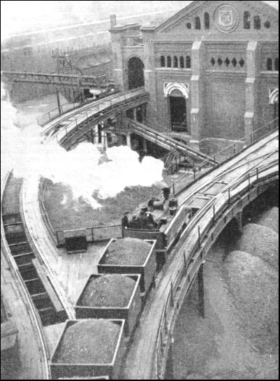 Aluminium, it may be recalled, is produced principally from pure alumina oxide, which is treated with a powerful electric current. At Kinlochleven, the power station that generates the current for the production of the metal derives its primary energy from the Blackwater Reservoir, high up on the verge of Rannoch Moor. Naturally, there is plenty of current to spare for general and special purposes in the aluminium-producing town of Kinlochleven. Before the war of 1914-18, Kinlochleven was isolated from any form of land transport whatever; but since 1906 a little electric railway, a mile long, with a double track, has simplified transhipment between the quay and the works. This line was the first electric railway to be operated in Scotland. The gauge is 3 ft., and power is supplied to overhead conductors at 500 to 550 volts D.C. The trains, which carry no passenger traffic, are operated by four-wheeled electric locomotives built at Preston, Lancashire, by the firm of Dick Kerr, now incorporated in the English Electric Company. Limited. They are queer little machines, but they are remarkably powerful for their size, and fulfil all the requirements of their design. Until 1920 there was no road to Kinlochleven, and the place remained as isolated from all but maritime approach as it had ever been. In that year a remarkable road built during the war by German prisoners was opened for traffic, but to this day only light materials are brought in by lorry, the electric railway carrying all the heavy goods from ships calling in the harbour. So Scotland's pioneer electric line remains isolated from the rest of her railway system, for the nearest public railway to Kinlochleven is the L.M.S. line ending at Ballachulish, far down the loch. The British Aluminium Company has a much longer railway in the Scottish Highlands, running between the new works outside Fort William and the dam at the foot of Loch Treig. This is worked by steam ; it is used only for maintenance purposes, and has not the really unique features—so far as Great Britain is concerned—of the little Kinlochleven Railway. It is an interesting line, for all that, and carried most of the material necessary in the building of the dam and its attendant works at Fersit and Loch Treig. Those works, incidentally, have included a fifteen-miles long tunnel right through Ben Nevis. This, however, is not a railway tunnel, but is designed to carry the energy-producing water from the loch to the works at Fort William. At the foot of Loch Treig the track of the L.N.E.R. West Highland line had to be raised to a considerably higher level because of the artificial increase in the level of the loch itself. The Manchester Ship Canal is not an undertaking which the uninformed are likely to associate with railways. Yet its works include no fewer than 212 miles of railway route, worked by seventy-four locomotives, generally similar to the usual colliery type, and well over 2,000 wagons. This system is not, strictly speaking, an industrial railway, for its operation is all part of the business of transport ; but the railways of canal and dock companies have a great deal in common with the purely industrial lines. At Liverpool, the Mersey Docks and Harbour Board has a network of over 118 miles of railway, and its thirty-six locomotives include two fireless engines and one driven by internal combustion. Fireless locomotives are referred to later in this chapter. Both the foregoing lines are built to the standard gauge. It was with the Mersey Docks and Harbour Board that the old Liverpool and Manchester locomotive "Lion" performed her last duty as a stationary pumping engine. Built in 1838, she was sold to the Board in May, 1859, and continued to work until quite recent years. She is now preserved, and may be seen by anyone entering Liverpool by the Lime Street terminus of the L.M.S.