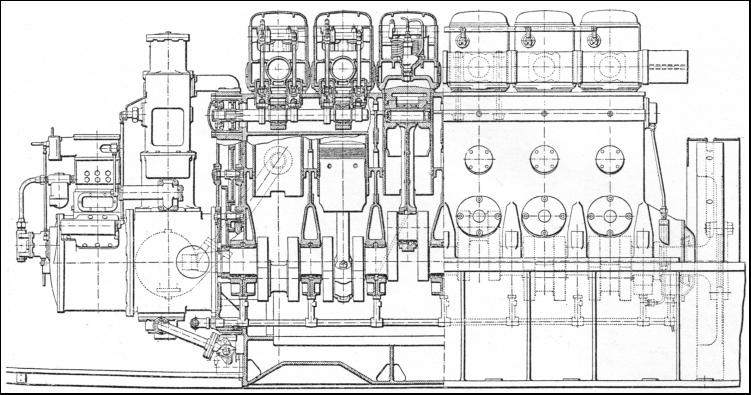 The Diesel locomotive, at present, is normally made in much lower horsepowers and for smaller haulage efforts than the steam locomotive ; it is therefore employed principally for local goods haulage and shunting or switching purposes on main line and narrow-gauge railways. It must not, however, be concluded that there is any definite limitation of size for Diesel locomotives, for, although in Great Britain the maximum size appears to be the 350 h.p., 50-tons locomotive used for shunting purposes, yet on the Continent, in the United States of America, and in the Argentine, Diesel locomotives or train units of 2,000 to 4,000 h.p. have been in regular operation in recent years. Since the present account is mainly confined to the smaller class of Diesel locomotives employed for shunting and goods haulage work, it may be of interest to give some general information relating to British makes of locomotive before proceeding to describe a number of typical commercial makes at present in use, both at home and abroad. Disregarding the narrow-gauge designs of Diesel locomotives as well as those used in coal mines for haulage purposes, the standard and broad gauge models now employed range in output from about 150 h.p. to 350 h.p., and in total loaded weight from about 15 tons up to about 50 tons. The tractive efforts available for starting purposes range from 6,000 to 30,000 lb., and the locomotives will haul from 100 to 1,000 tons on the level, according to the size of engine fitted and the speed of working. The usual wheel arrangement for the smaller shunting locomotives is the 0-4-0 ; for the larger 300-350 h.p. engines the 0-6-0 arrangement is adopted. Several types of transmission systems are employed. In all examples, it is necessary to interpose some kind of reduction gear, since the driving wheels of the locomotive revolve at a much lower rate than the engine ; moreover, for starting purposes and when hauling heavy loads it is necessary to have a much higher turning effort, or torque, at the driving wheels than is given at the engine's crankshaft. The necessity for reduction gears is just as important in a high-speed Diesel locomotive as it is in a motor vehicle, for in each instance the low torque and high revolutions of the engine must be converted (by the transmission system) to higher torques and lower revolutions at the driving wheels. In addition, it is necessary to have a clutch—or its equivalent—to connect the engine to the driving wheels for starting, and to disconnect it for stopping purposes. The smaller Diesel locomotives are normally fitted with a friction type of clutch and a two- or three-speed gearbox ; a reverse gear is usually embodied in the gearbox. The most favoured form of gearbox appears to be the type having its gears of the helical or herringbone pattern, in constant mesh. Dog clutches are used to engage the different gears. This type of Diesel locomotive is thus built on a principle similar to that of the ordinary motor-car. The mechanical gear method, while being fairly satisfactory and reliable for small locomotives, needs skill and attention on the part of the driver, and it may be noisy in operation. In the medium and larger sizes of Diesel shunting locomotive, these objections have satisfactorily been met by the substitution of the hydraulic or electrical systems for the mechanical gear transmission. The use of oil-filled hydraulic torque converters in place of ordinary gearboxes has not only brought about more silent running, but has also made gear-changing simpler. The electric transmission system consists in coupling the engine to a dynamo, or generator, and taking the electrical output from the latter to electric motors on the driving wheel axles. By means of suitable resistances controlled by simple switches it is possible to provide the driver with an easy and effective means of control for starting, accelerating, and stopping. The larger Diesel locomotives generally employ this electrical transmission system. Compactness is another advantage of the Diesel locomotive. Since there is no boiler in front, a much better field of view is obtained from the driver's cab than would be possible in a steam locomotive. The relative shortness of the high-speed Diesel engine, as compared with the boiler and smoke-box of a steam locomotive, is another factor making for a better view ahead. The Diesel engine is generally—although not invariably—placed vertically on the locomotive frame, and is encased in a sheet metal chamber, or "bonnet," somewhat on the lines of a motor-car bonnet. This is provided with hinged or removable doors having a series of louvres, or slots for cooling purposes.