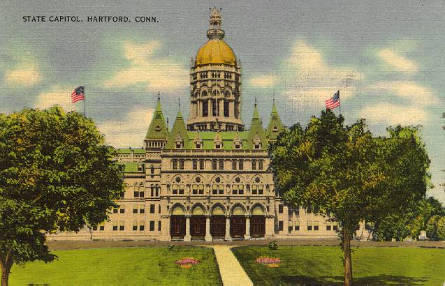 Richard M. Upjohn: CT State Capitol, Hartford, 1878. From an old postcard. (Richard M. Upjohn is the son of Richard Upjohn) |
