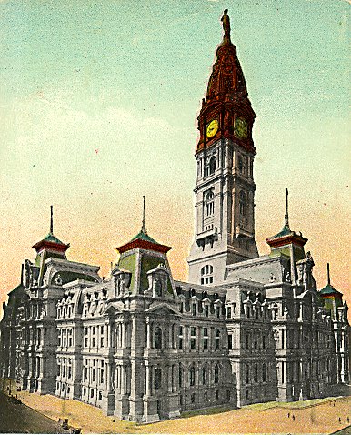 ![]() J. Macarthur: City Hall, Philadelphia,1868-1901. From an old postcard. |