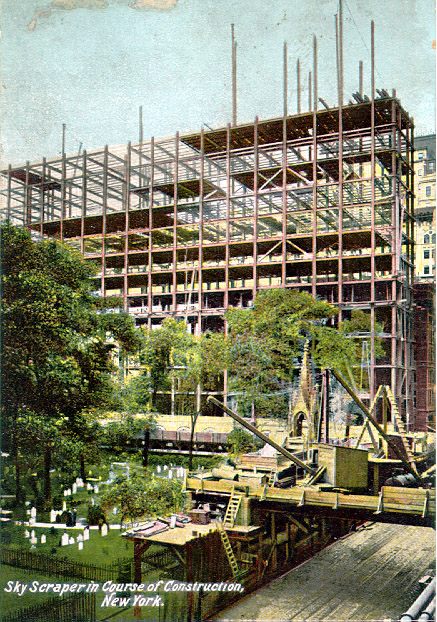 Francis Hatch Kimball: Trinity Building under construction, NYC, 1904-5, NYC. Postcard, 1906. |