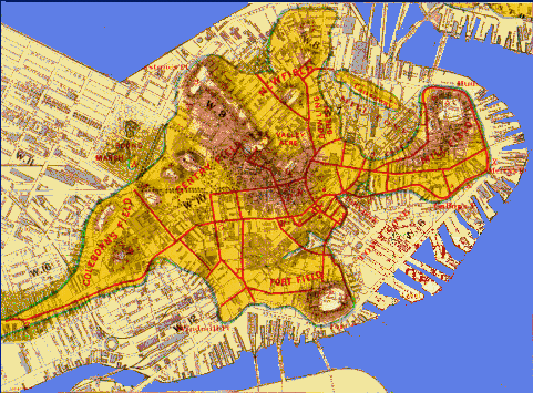 the extent of the landfill. Modern landmarks such a the Southeast expressway