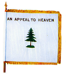 Col. Joseph Reed, in a letter dated October 20, 1775 from Cambridge, Massachusetts, to Colonels Glover and Moylan, said, "Please to fix some particular color for a flag, and a signal, by which our vessels may know one another. What do you think of a flag with a white ground, a tree in the middle, the motto -- 'Appeal to Heaven'? This is the flag of our floating batteries."