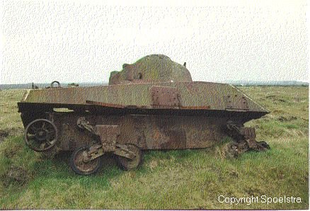 After WW2 a Sherman V with CIRD fittings ended up on one of the Commonwealth vehicle dumps in the Netherlands. It was taken into service as a normal gun tank by the Royal Netherlands Army and issued with registration number 34076. It ended up on a range were its shattered remains were photographed before it disappeared. |