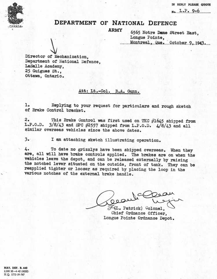 The proof of this theory came from David Herbert. In December 2000 he found some material mentioning a "Brake Control bracket" in the National Archives in Ottawa, Canada: