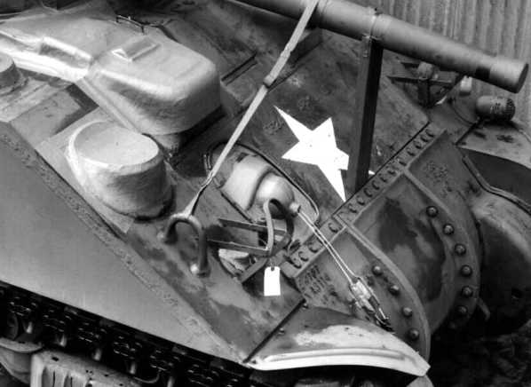 | "One guy wrote to say it was used to hold a rope that was tied to the transmission lock on vehicles being moved by rail. The rope, according to this theory, was pulled when the crew unloading the tank wanted to release the lock. Sounds good but why would it also be on non-Sherman vehicles then? And also why is it in different locations such as on the upper front left on some M-7s?" |