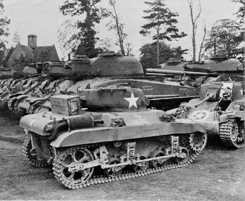 This photo originally appeared on the May 1970 issue of AFV News. According to the caption is was taken in 1944 in England by Bill Neher: "It is a most interesting size comparison of a pair or light M-22 "Locust" airborne tanks sharing a tank depot with a group of Sherman VC "Fireflies"." | ||