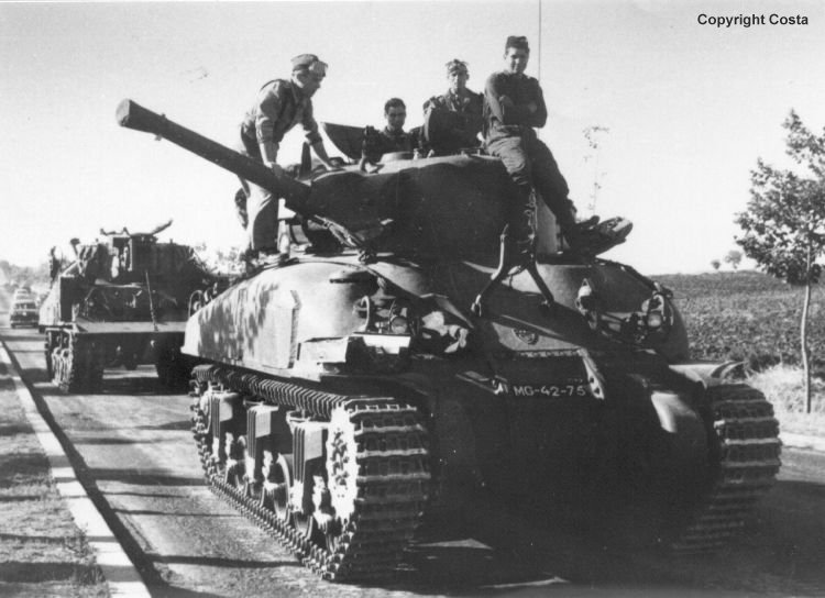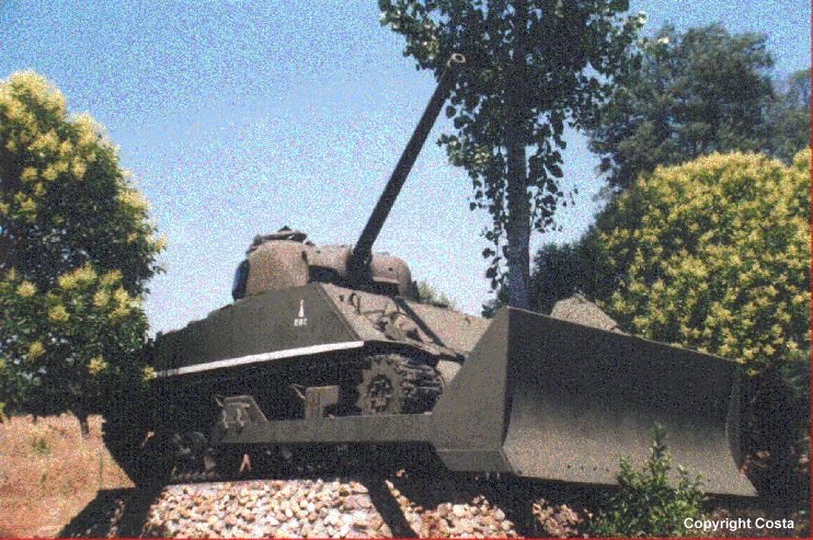 In 1953 the USA also supplied a number of Shermans under the MDAP. These included one M4A1(76)W HVSS, six to eight M4A3(105) HVSS and a number of Sherman dozer tanks. These were M4A3-E4 76MM Shermans (retrofitted with 76mm guns - one of them was retrofitted with HVSS as well). A surviving example is shown on the left. |