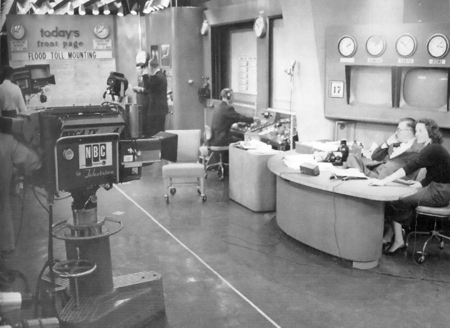 NBC's Today Show, hosted by Dave Garroway, broadcast from the RCA Exhibition Hall, Rockefeller Center, New York City. Located near the current Today studios. The RCA Exhibition Hall was located at street level, across from "30 Rock". The space was a large display area of RCA products and included the Today studio. Unlike today's versions of morning news shows, the talent faced the plate glass windows giving visitors an unobstructed view, except for the camera positions and TV monitors. After the broadcast, a camera was turned around facing the street so that NYC visitors could see themselves on televison, including your host. 1957 RCA/NBC photo.