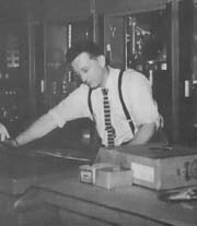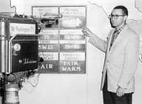 A long time local favorite..."live" weather report from "the top of the rock pile." An RCA TK 21 camera, located in the transmitter building is utilized to include the "live" weather insert. A WMTW-TV staff engineer is the weather reporter. Eventually making Marty Engstrom a legend. A young Marty pictured in studio shot. (left) |