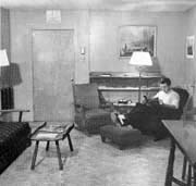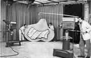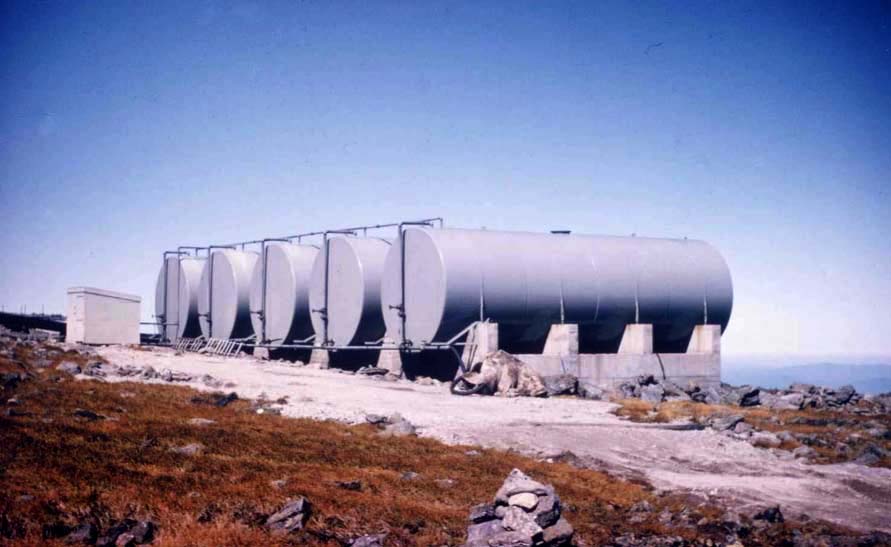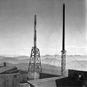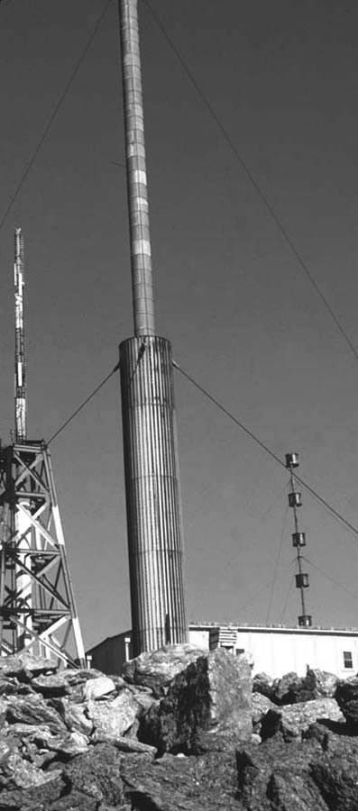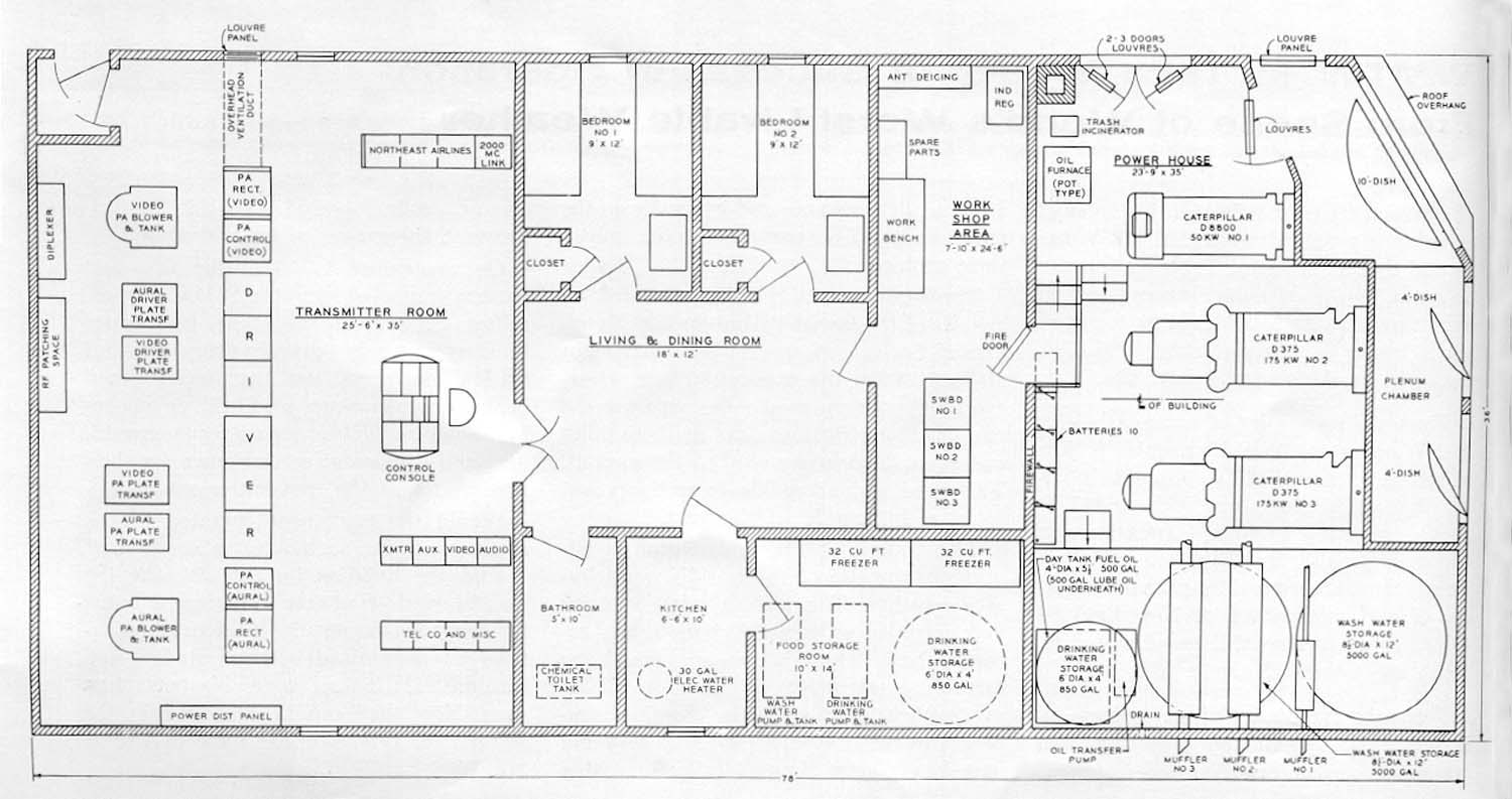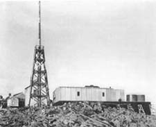 Keller Products of Manchester, NH, builder of artic homes for the U.S.Army, is selected to designs and build the transmitter building. The structure is constructed in Manchester. It is then dis-assembled, shipped and re-assembled up on the mountain. The building is designed to withstand hurricane strength winds as well as falling ice. Sections of roof panels are tested by dropping a 200 lb piece of ice from 50 feet. The Rust Industrial Company of Manchester, NH, is the General Contractor for the project. Rust is awarded the contract for pre-assembly, testing and shipping the 25 KW transmitter and support electronic equipment. In addition, Rust is responsible for all of the electrical wiring in the new facility. It to, is prefabricated and tested in the Manchester facility before shipment to the mountain. This process reduced final assembly by about 50 percent. |