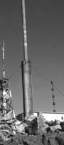 After a ten year absence, FM broadcasting returns to the summit of Mount Washington, using the historic Yankee Network calls...WMTW. WMTW-FM operates with 48 KW ERP on 94.9 mc. From it's perch at over 6,000 feet above sea level, making it one of the country's most powerful FM station, relative to coverage area. The station uses beam-tilt on its transmitting antenna. Beam-tilting "bends" the signal down from true horizontal, towards the populated areas below, instead of "wasting" the signal above them. Beam-tilting is accomplished by "phasing" of the transmitting antenna elements. Varying the length between the antenna bays will accomplish this. |