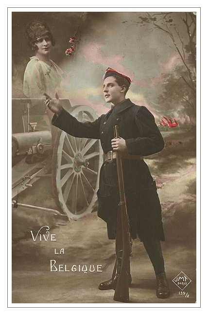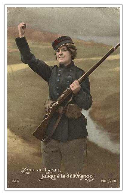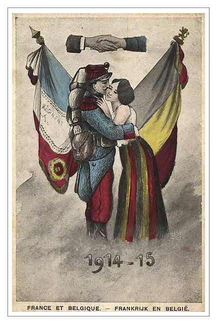 Patriotic kitsch : posed postcards with a Belgian sweetheart and G.I. Jane, 1914-style.