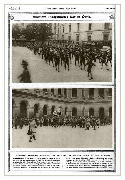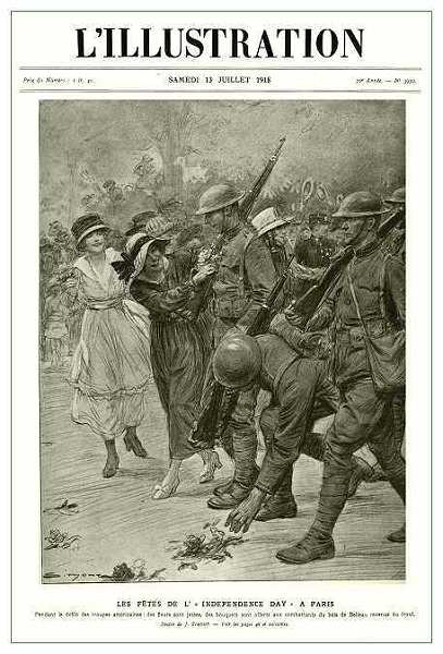 4th of July parade in Paris 1918 as portrayed by two French newsmagazines 'l'Illustration' and 'le Miroir'