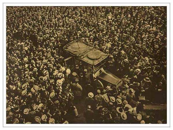 While Pershing and the commissioned officers of his staff disembarked and were immediately taken away in automobiles, non-commissioned officers and privates-orderlies and attaché to the American General's entourage - swarmed off the vessel and mixed joyously with the crowd at the railway station. There were British Tommies there to welcome their new brothers in arms-and French poilus as well. Hundreds of handshakings - and embraces - marked the meeting of these representatives of three great armies, now pledged to a common purpose.
