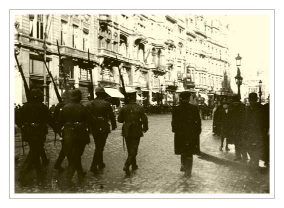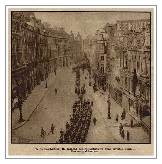 Antwerp was an almost empty city when German troops held a victory parade in the city center.