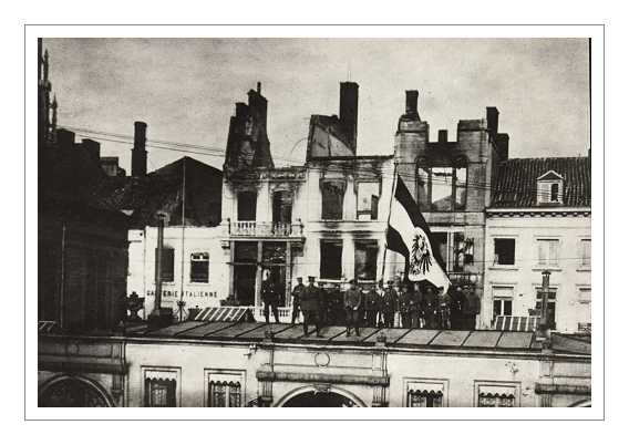 the German flag flies over former Belgian Headquarters