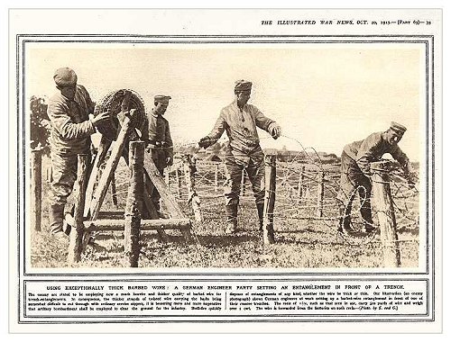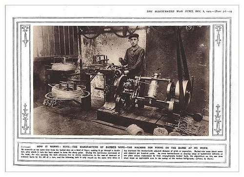 Barbed Wire is serving a purpose in the war perhaps only second in importance to munitions properly so called shells and bullets.