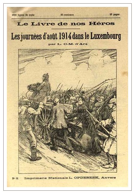 The multi volume histories which began appearing in the 1920s were somewhat milder in tone than some of the popular booklets and magazines which were intended for the working classes. This Belgian book for instance, 'La Belgique Héroique et Martyre', sets to print a long catalogue of offences and outrages commited by the Germans in Belgium during the course of the war. The gist of the accusations is historically correct, for it is estimated and now accepted that some 5500 Belgian civilians were killed as a result of unwarranted actions by German forces in Belgium.