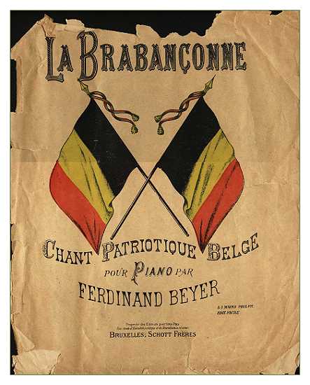 patriotic portrait of King Albert - sheet music for the Belgian national anthem
