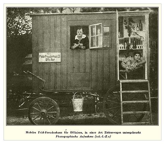 Mobile warfare on the erotic front : a 'Mobile Field-Pleasure House for Officers'. One cannot help but wonder if this served as inspiration for the 1930s Laurel and Hardy film 'The Bohemian Girl'. In fact the lady posing in the window opening bears more than a passing resemblance to Oliver Hardy though that might be nothing more than a trick of the light. Then again maybe some officer felt a need to get out of his uniform and slip into something more comfortable.
