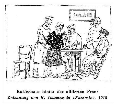 'Coffehouse Behind Allied Lines' a drawing from 1918