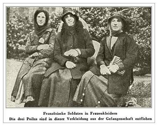 These three Poilus escaped from a POW camp dressed in these clothes"