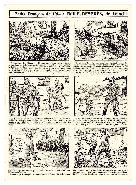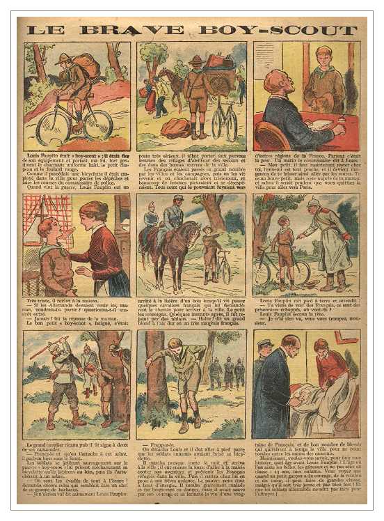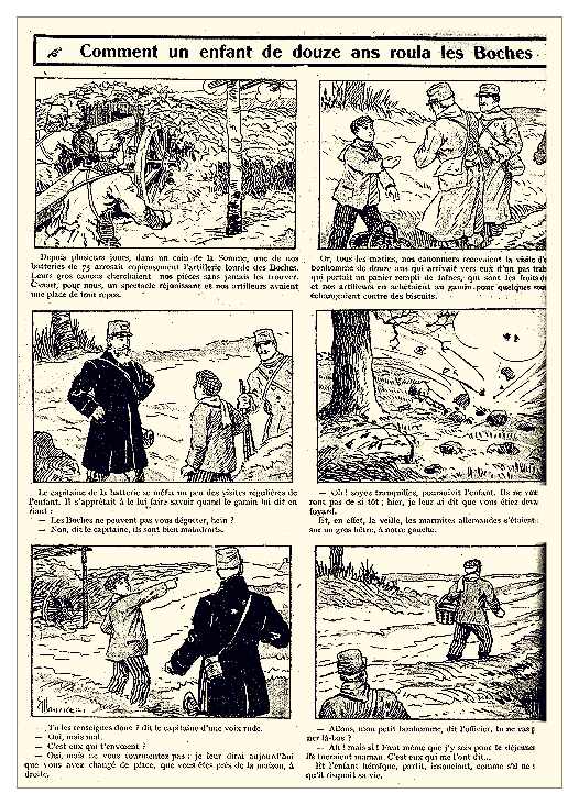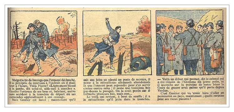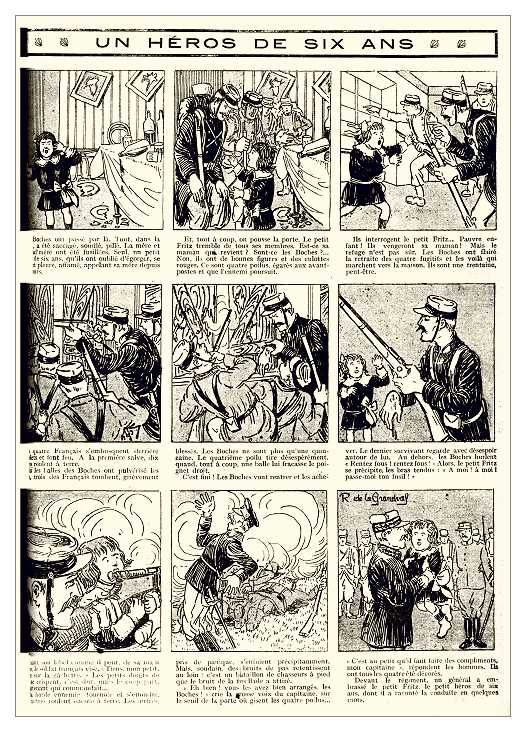 'Les Trois Couleurs' (the Three Colors - blue, white and red of the tricolor) was a French children's weekly magazine. It was published from December 1914 through to the end of the war in 1918, and featured comics strips, cartoons, (very improbable) short stories, puzzles etc. It's main theme was of exalted patriotism in all shapes and forms, sometimes far exceeding the boundries of acceptable norms and civilized behavior, even for the long gone days of 1914. It was in any case a very colorful and well published magazine, abundantly illustrated.