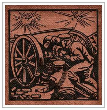 Suddenly there was a deafening crack, followed by four stabbing flashes of flame. The i8-pounder battery behind had opened fire. As if this were the signal, every battery on the front crashed into a thunderous accompaniment, and the whole earth seemed to shake to the blasting roar of their guns. Shadbolt's first battle had begun. In the half light behind the gun he watched the mechanical feeding of an insatiable monster by its statuesque slaves, their grey, unshaven faces contorted by the flickering gun-fire into something evil and unearthly. This diabolic illusion was increased by their continual ramming and stoking, their tireless activity, and their silence. Across the orchard the men on Alington's gun were working with the same precise and deadly concentration. Through the trees he could see his friend's long legs moving restlessly to and fro, as he checked the sights and ammunition, and superintended the working of his detachment.