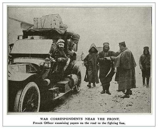 The General then gave me a letter of introduction to another general, who, he said, would give me all the assistance he could. Armed with this document, I started out in company of a staff officer, who was to guide me to the Brigade headquarters. Arriving there (it was the most advanced point to which cars were allowed to go), I obtained two orderlies, gave one my aeroscope, the other the tripod, and, strapping another upon my back, we started off on a two-mile walk over a small hill, and through communication trenches to the section.