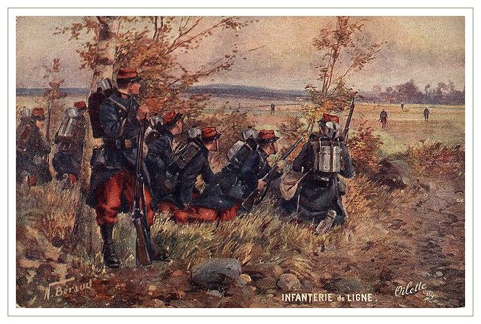 Here is a small collection of particularly colorful, romantic and probably very unrealistic postcards depicting the French army.