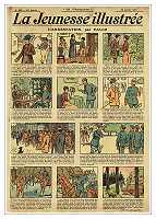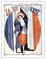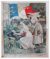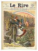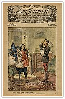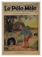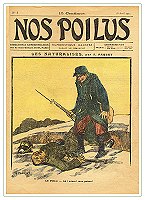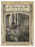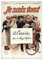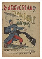 There were also specific war-related children's magazines such as 'Les Trois Couleurs', which featured comic strips, stories and illustrations for a youthful and patriotic public. And Paris being renowned as the capital of vice and sin, it could not be otherwise than naughty, racy publications such as 'La Vie Parisienne', 'Le Rire', 'Le Sourire', 'La Vie de Paris', 'Frou-frou' etc. all adapated themselves to war-time conditions. A new publication combining humor, satire, patriotism and a vague all-knowing sense of the naughtiness of the world was launched during the war years. It was called 'La Baionnette' and featured color illustrations by many of the more renowned French illustrators of the day, such as Hérouard and Le Rallic. Many issues were built up around a single theme such as for instance, 'Going on Leave', 'Trench Philosophers', 'Women at Work', 'Life in Cantonnements' and so on.