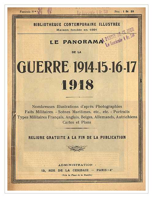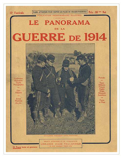'Le Panorama de la Guerre' was a serial history of the Great War in French, published in weekly installments, much like the British and german sereial publications that were so popular at the time. Each issue was lavishly illustrated with photographs, drawings and color plates. The price per issue was not very high, especially considering the quality and quantity of illustrative material. Being a French publication, the magazine of course tended to focus on events directly effecting France, but even so the magazines taken as a whole offer a fascinating, if not always factually correct view on the Great War.