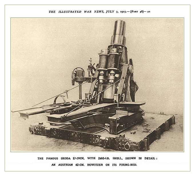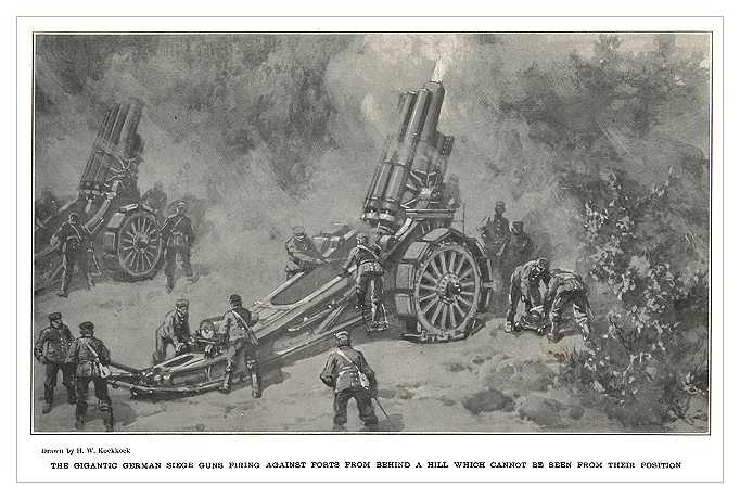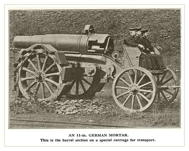 The big gun is not a novelty; the Japanese used 11 inch howitzers before Port Arthur, and on our own battleships we have 15-inch guns. The big guns used by the Japanese, however, had to be transported with immense labour after their dismantling from the fortifications on the Japanese coast, and when they arrived in Manchuria they had to be set up on solid mountings bedded in concrete - a task of much effort and one taking considerable time. The great guns on our ships, apart from being of such construction and weight (about 100 tons) as to make them useless on land, gain most of their value from being built for the permanent platforms of shipboard. It is, therefore, not the heaviness but the mobility of the German siege artillery that gives it its value both in surprise and effect.
